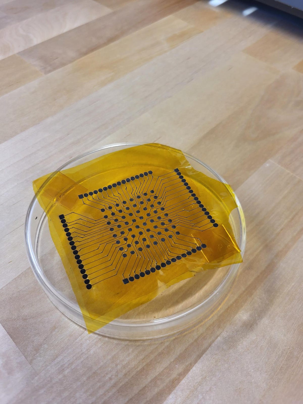 Neurotech student clubs and researchers wanted to investigate the neuron’s response to nootropics, sleep peptides, capsaicin, or mushrooms’ abilities to use language. However, the component which interfaces with the neurons—microelectrode array—tends to have long-shipping times and also costs $300. It just is a miniscule grid of wires! So, we’re building a cheap MEA, and so far graphene version costs <1$ and 5.5 min per unit.